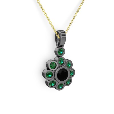 Yeşil kuvars ve siyah zirkon 925 ayar siyah rodyum kaplama gümüş kolye (40 cm altın rolo zincir)