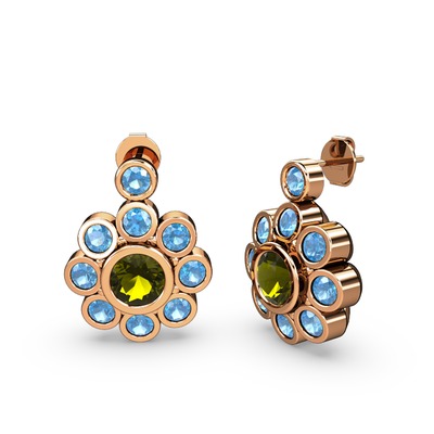 Akuamarin ve peridot 8 ayar rose altın küpe