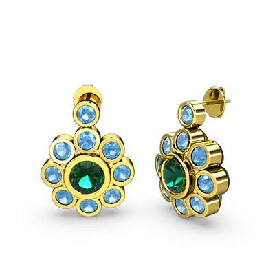 Akuamarin ve yeşil kuvars 14 ayar altın küpe