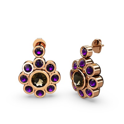 Ametist ve dumanlı kuvars 925 ayar rose altın kaplama gümüş küpe