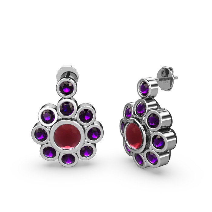 Ametist ve kök yakut 8 ayar beyaz altın küpe