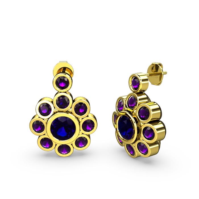 Ametist ve lab safir 18 ayar altın küpe