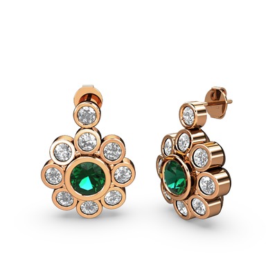 Beyaz zirkon ve yeşil kuvars 18 ayar rose altın küpe