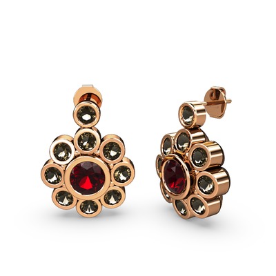 Dumanlı kuvars ve garnet 8 ayar rose altın küpe