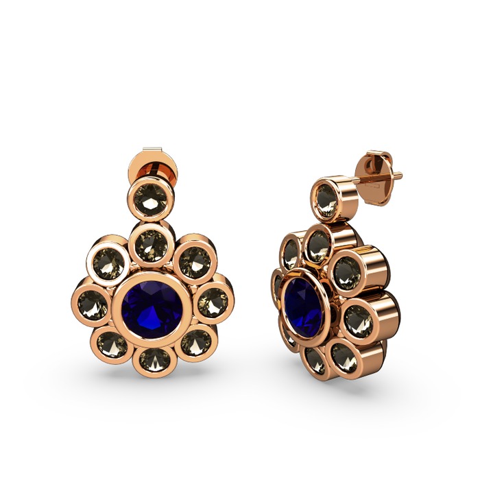 Dumanlı kuvars ve lab safir 14 ayar rose altın küpe