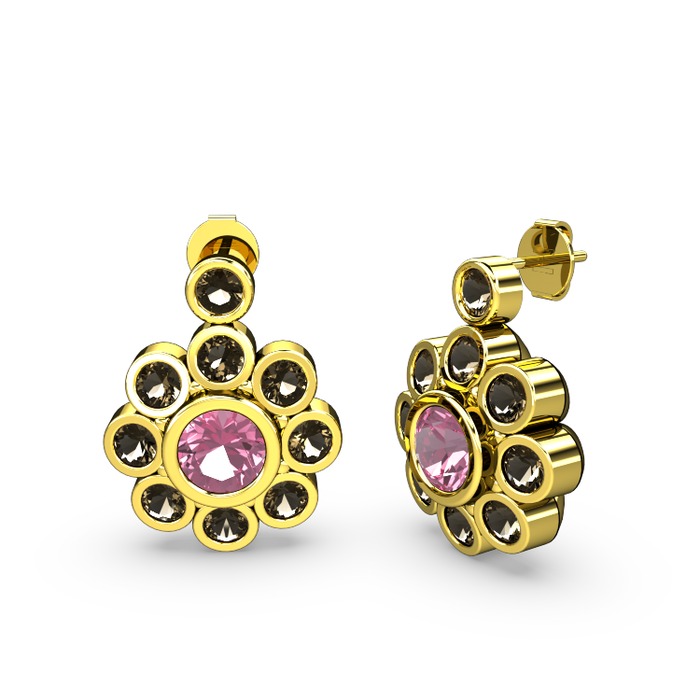 Dumanlı kuvars ve pembe kuvars 8 ayar altın küpe