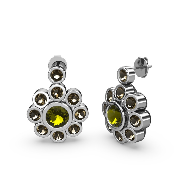 Dumanlı kuvars ve peridot 8 ayar beyaz altın küpe