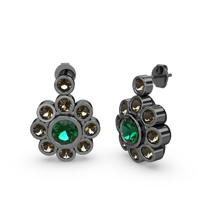 Dumanlı kuvars ve yeşil kuvars 925 ayar siyah rodyum kaplama gümüş küpe