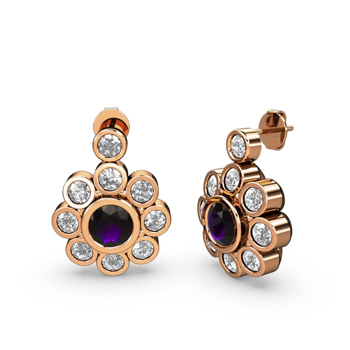 Elmas ve ametist 925 ayar rose altın kaplama gümüş küpe (1 karat)