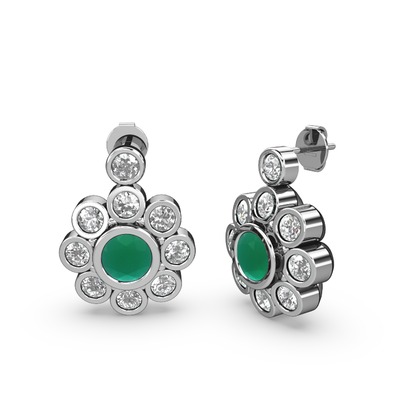 Elmas ve kök zümrüt 8 ayar beyaz altın küpe (1 karat)