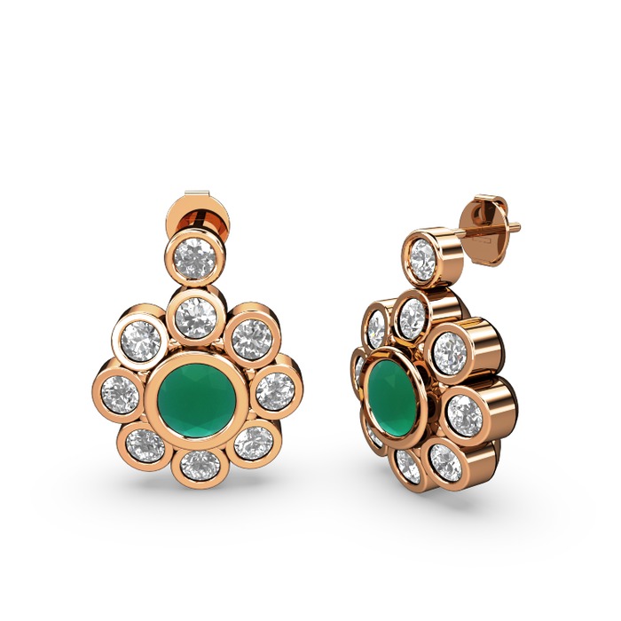 Elmas ve kök zümrüt 8 ayar rose altın küpe (1 karat)