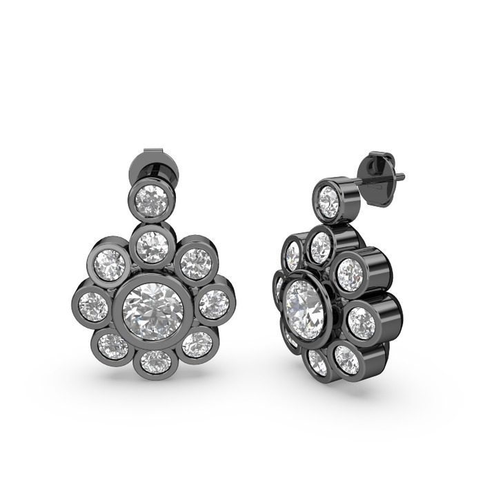 Elmas ve swarovski 925 ayar siyah rodyum kaplama gümüş küpe (1 karat)