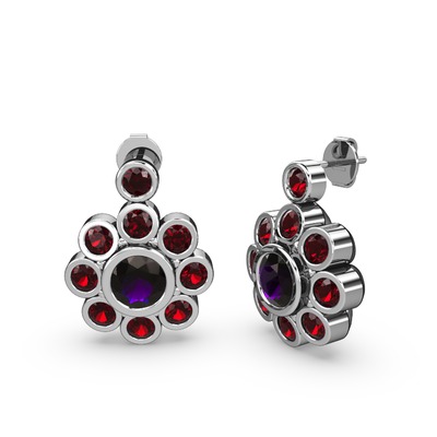 Garnet ve ametist 8 ayar beyaz altın küpe