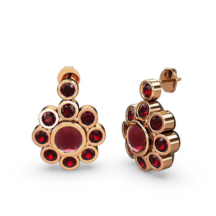 Garnet ve kök yakut 14 ayar rose altın küpe
