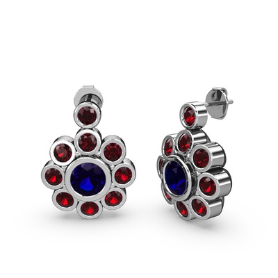 Garnet ve lab safir 14 ayar beyaz altın küpe