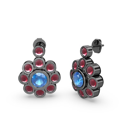 Kök yakut ve akuamarin 925 ayar siyah rodyum kaplama gümüş küpe