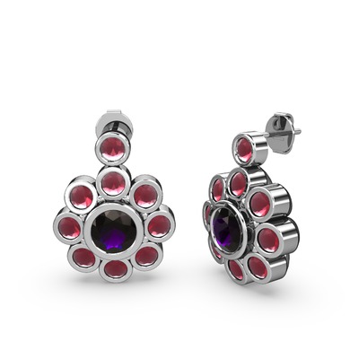 Kök yakut ve ametist 925 ayar gümüş küpe