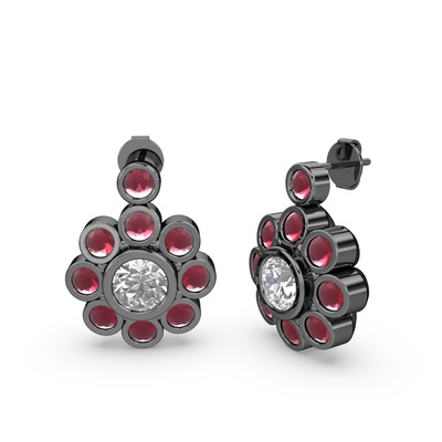 Kök yakut ve beyaz zirkon 925 ayar siyah rodyum kaplama gümüş küpe
