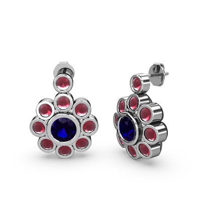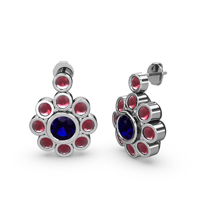 Kök yakut ve lab safir 18 ayar beyaz altın küpe