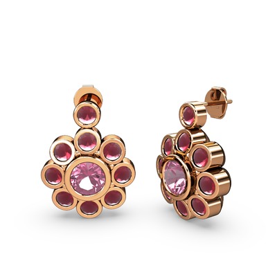 Kök yakut ve pembe kuvars 925 ayar rose altın kaplama gümüş küpe