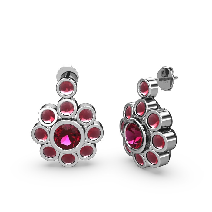 Kök yakut ve rodolit garnet 18 ayar beyaz altın küpe