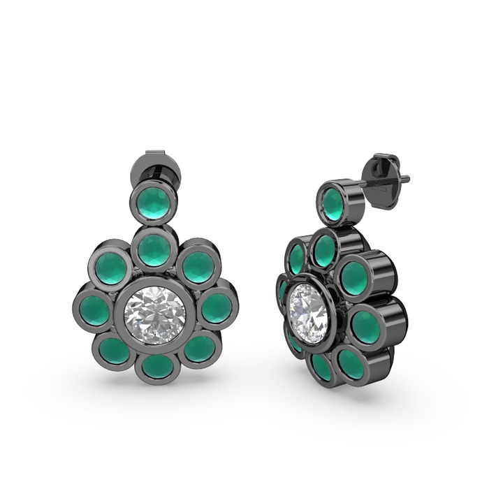 Kök zümrüt ve elmas 925 ayar siyah rodyum kaplama gümüş küpe (1.08 karat)