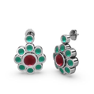 Kök zümrüt ve kök yakut 8 ayar beyaz altın küpe