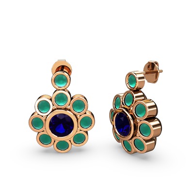 Kök zümrüt ve lab safir 18 ayar rose altın küpe