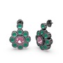 Kök zümrüt ve pembe kuvars 925 ayar siyah rodyum kaplama gümüş küpe