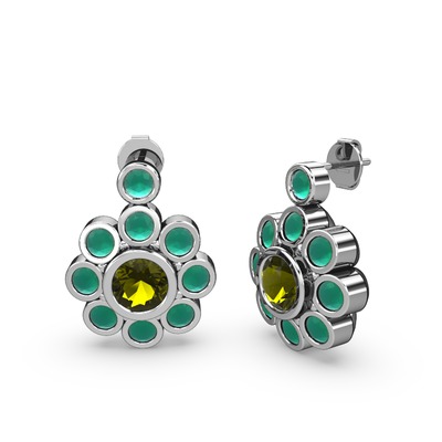 Kök zümrüt ve peridot 18 ayar beyaz altın küpe