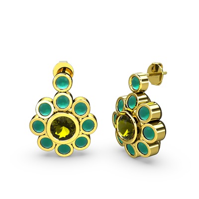 Kök zümrüt ve peridot 925 ayar altın kaplama gümüş küpe