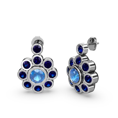 Lab safir ve akuamarin 18 ayar beyaz altın küpe