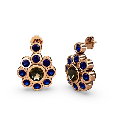 Lab safir ve dumanlı kuvars 8 ayar rose altın küpe