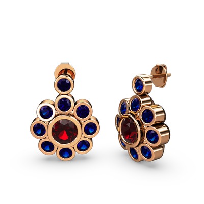 Lab safir ve garnet 925 ayar rose altın kaplama gümüş küpe