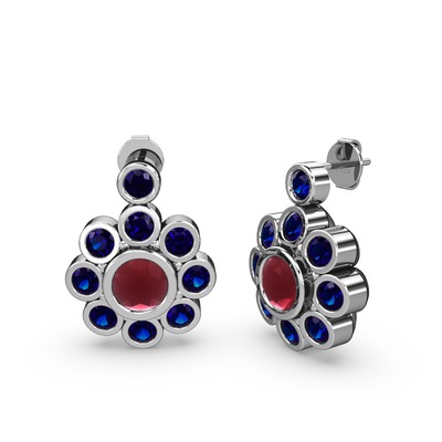 Lab safir ve kök yakut 925 ayar gümüş küpe