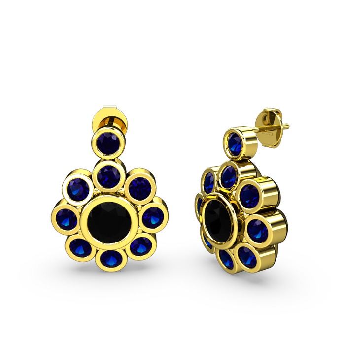 Lab safir ve siyah zirkon 14 ayar altın küpe