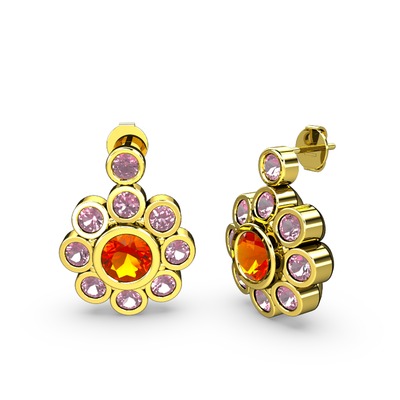 Pembe kuvars ve sitrin 14 ayar altın küpe