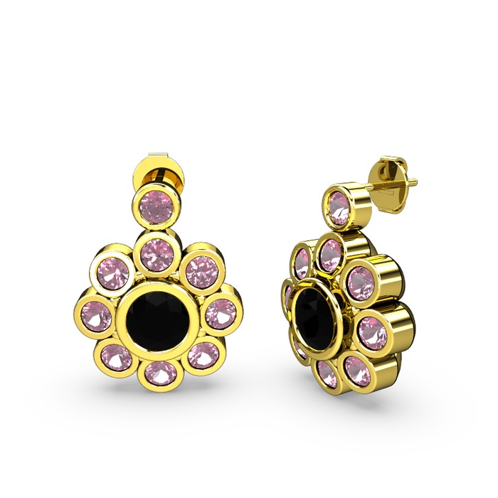 Pembe kuvars ve siyah zirkon 925 ayar altın kaplama gümüş küpe