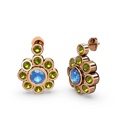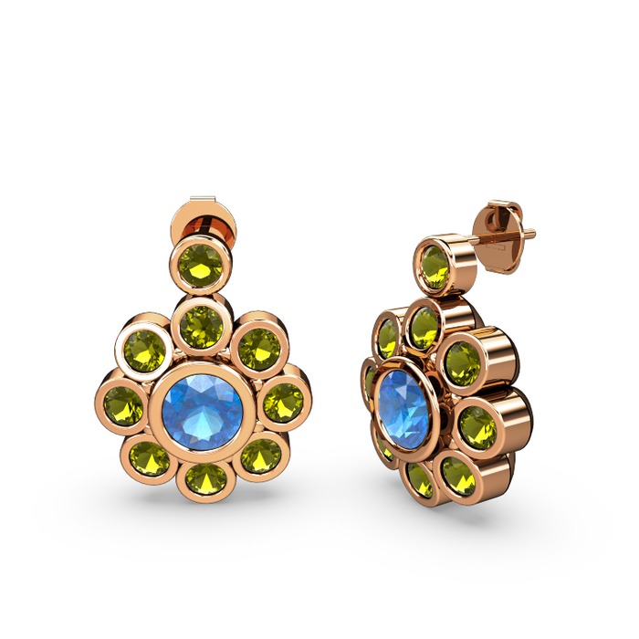 Peridot ve akuamarin 8 ayar rose altın küpe