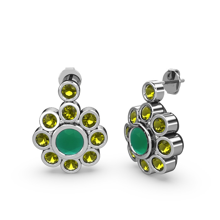 Peridot ve kök zümrüt 18 ayar beyaz altın küpe