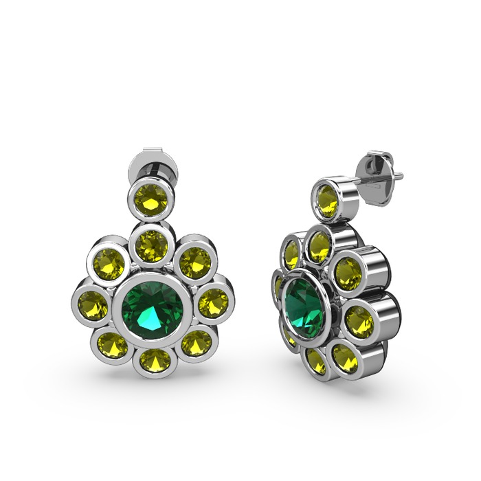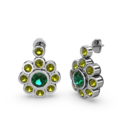 Peridot ve yeşil kuvars 14 ayar beyaz altın küpe