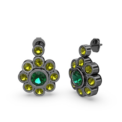 Peridot ve yeşil kuvars 925 ayar siyah rodyum kaplama gümüş küpe