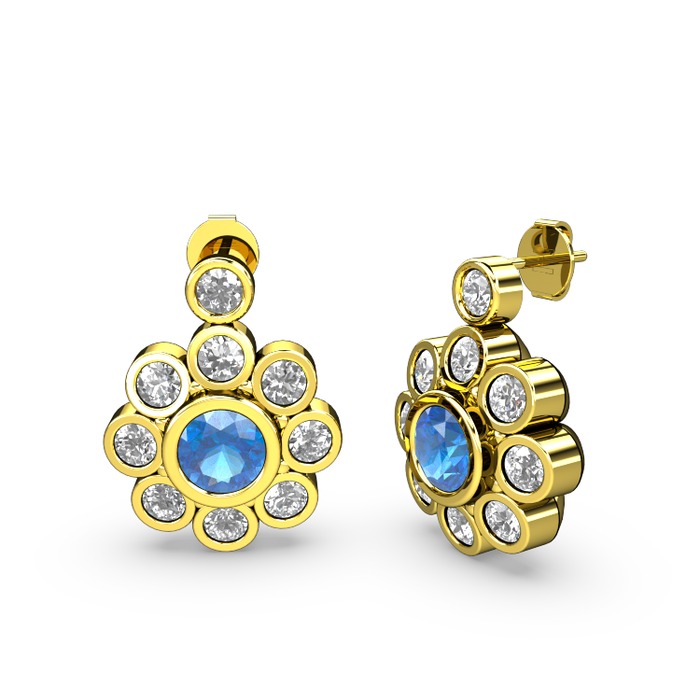 Pırlanta ve akuamarin 925 ayar altın kaplama gümüş küpe (1 karat)