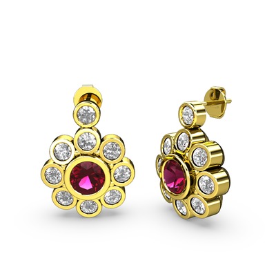 Pırlanta ve rodolit garnet 925 ayar altın kaplama gümüş küpe (1 karat)