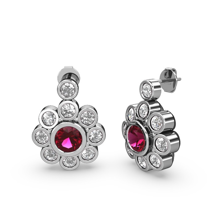 Pırlanta ve rodolit garnet 925 ayar gümüş küpe (1 karat)