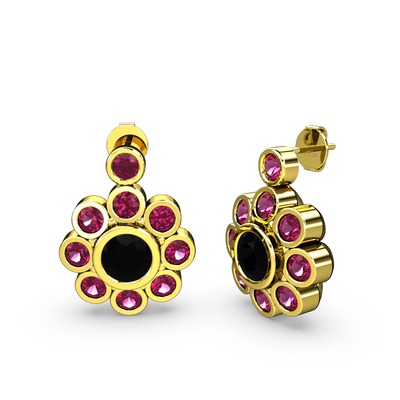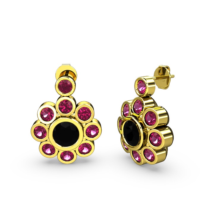 Rodolit garnet ve siyah zirkon 18 ayar altın küpe