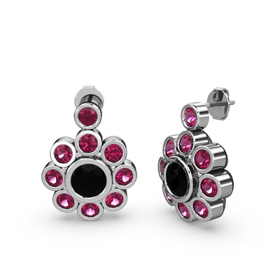 Rodolit garnet ve siyah zirkon 8 ayar beyaz altın küpe