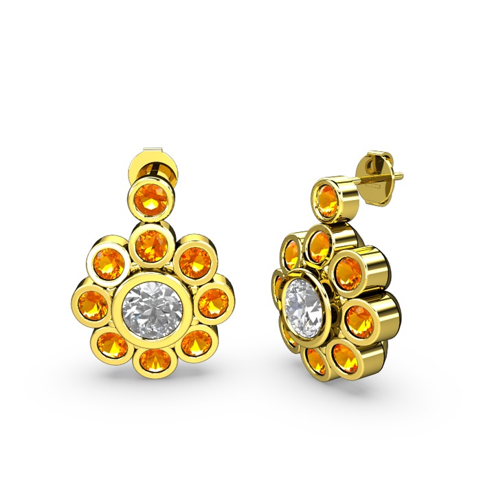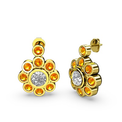 Sitrin ve elmas 14 ayar altın küpe (1.08 karat)
