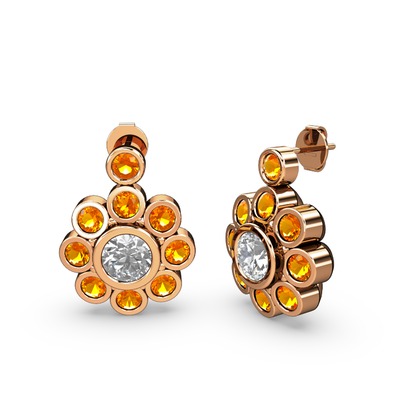 Sitrin ve pırlanta 14 ayar rose altın küpe (1.08 karat)
