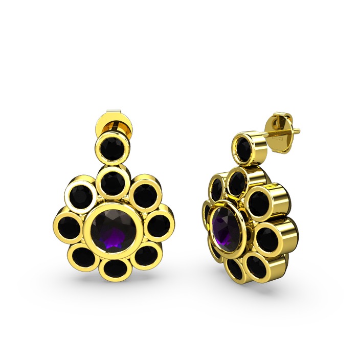 Siyah zirkon ve ametist 8 ayar altın küpe